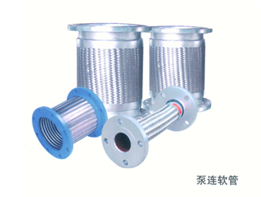 在泵或壓縮機與閥門、儀器儀表所構成的輸送液、氣介質的管道系統中,常因振動損壞儀器儀表,縮短元器件的使用壽命,影響系統的正常工作,還因振動產生的噪音嚴重危害操作者的健康。所以在泵的進出口安裝一節泵連軟管可減小、吸收管系統的振動和噪音,同時還能補償一定的位移,保護了系統正常工作,靜化工作環境,并消除了以往采用的橡膠軟接容易老化,耐溫性能差等常見病。